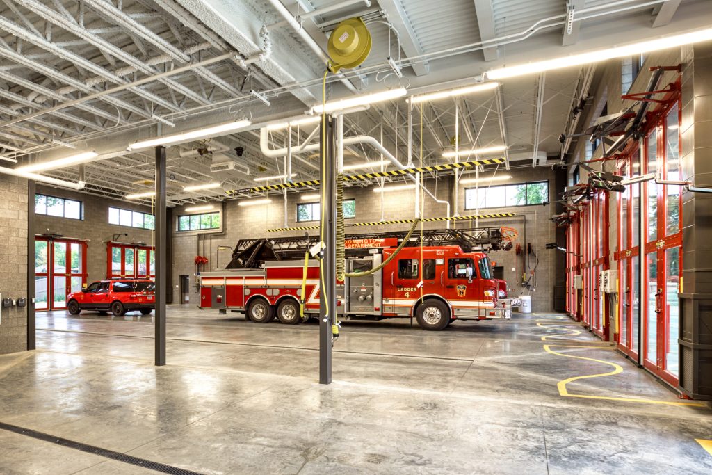 This 23,000 sq. ft. masonry and brick veneer fire station has three pull through apparatus bays, living quarters, and a storm shelter. The structure also includes a state-of-the-art 36’ tall hose/training tower.